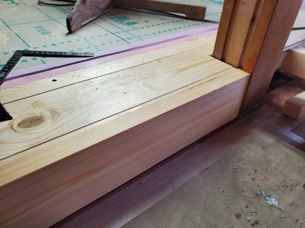 ちなみに敷居を取り付けた写真です。ヒノキです。
