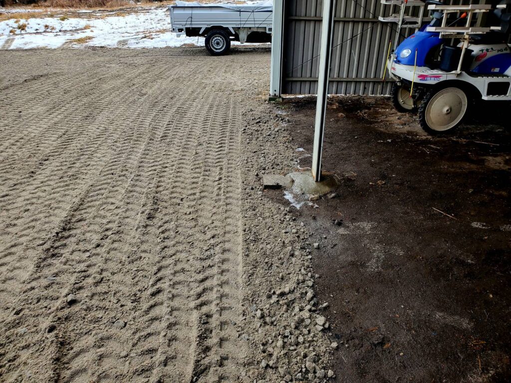 また昨日は、敷地に砕石を敷きました。敷地が土のために工事車両が泥だらけになったり、歩きにくいため、砕石を敷きました。
