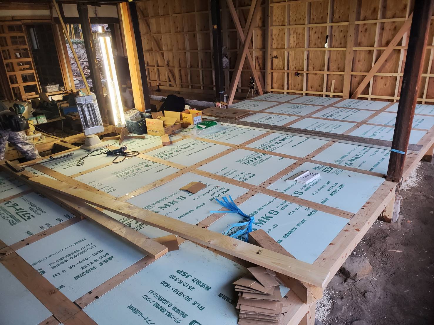 床の断熱材を施工しました。